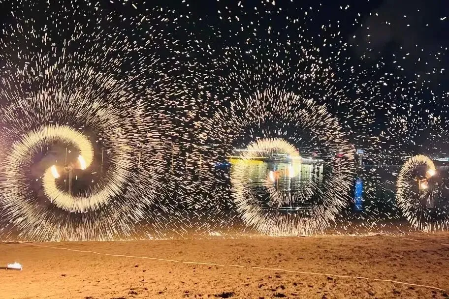 海上烟花,非遗打铁花