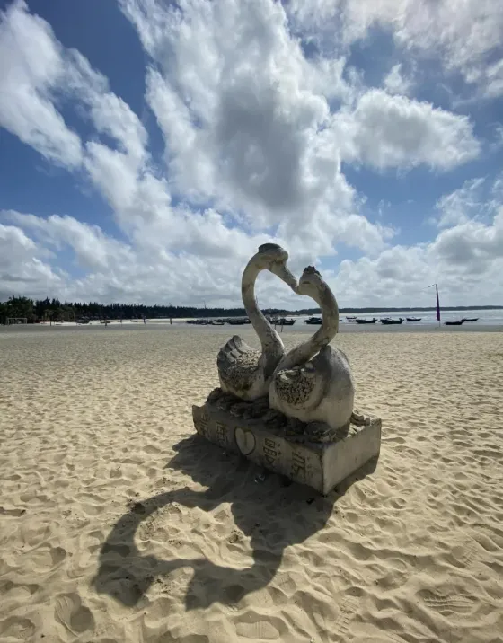 粤西 “果冻海”,沙质细腻,适合游泳、拍照。 打卡标志性石碑、绿道、海边秋千。
