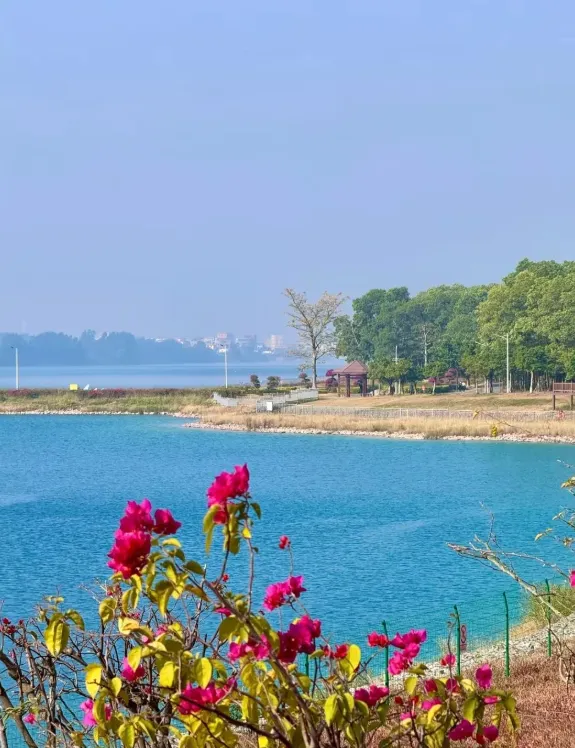 亚洲最大废弃矿坑改造,湛蓝 “好心湖”,环湖骑行 / 散步。