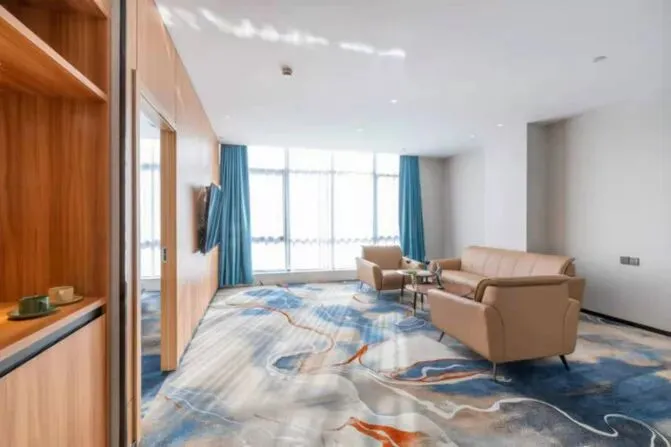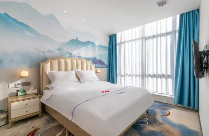 浅蓝色的壁画配合温馨的米色搭配,给人一种非常舒心的感觉,床垫软硬适中也很舒服,地毯软绵洁净,主要是静音。用品都是阳光的味道,肯定是刚刚晒过的,很难得。