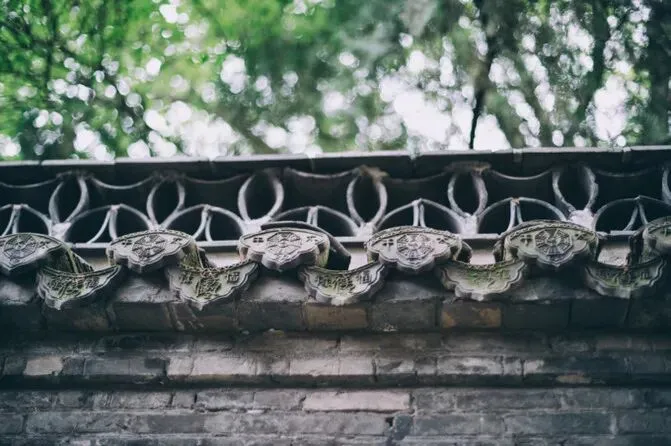 往深处走,会看到一处拱形建筑上写有“入胜”两字,意味着穿过这扇门,就来到了园林最精华的部分。不过,我发现就算没有走入这扇门时,已经被眼前的美景吸引,镂空的墙体,刻有字体的砖瓦,保存的如此完好,真的不简单。