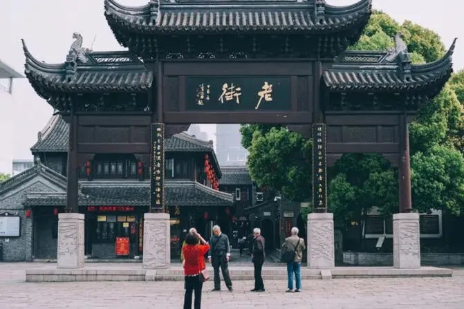 在 桃园 入口处看到一座牌坊,写有老街二字。老街并非真正意义上的老街,包括即将要进去的 桃园 ,是当地政府历经2年打造的一条年轻的街道,但麻石铺就的小路却是真正的明清小巷,长约600米,两侧青砖黛瓦的建筑绵延两侧。我们并没有走进去,现在想想还真有点后悔没能走进去瞧一瞧……