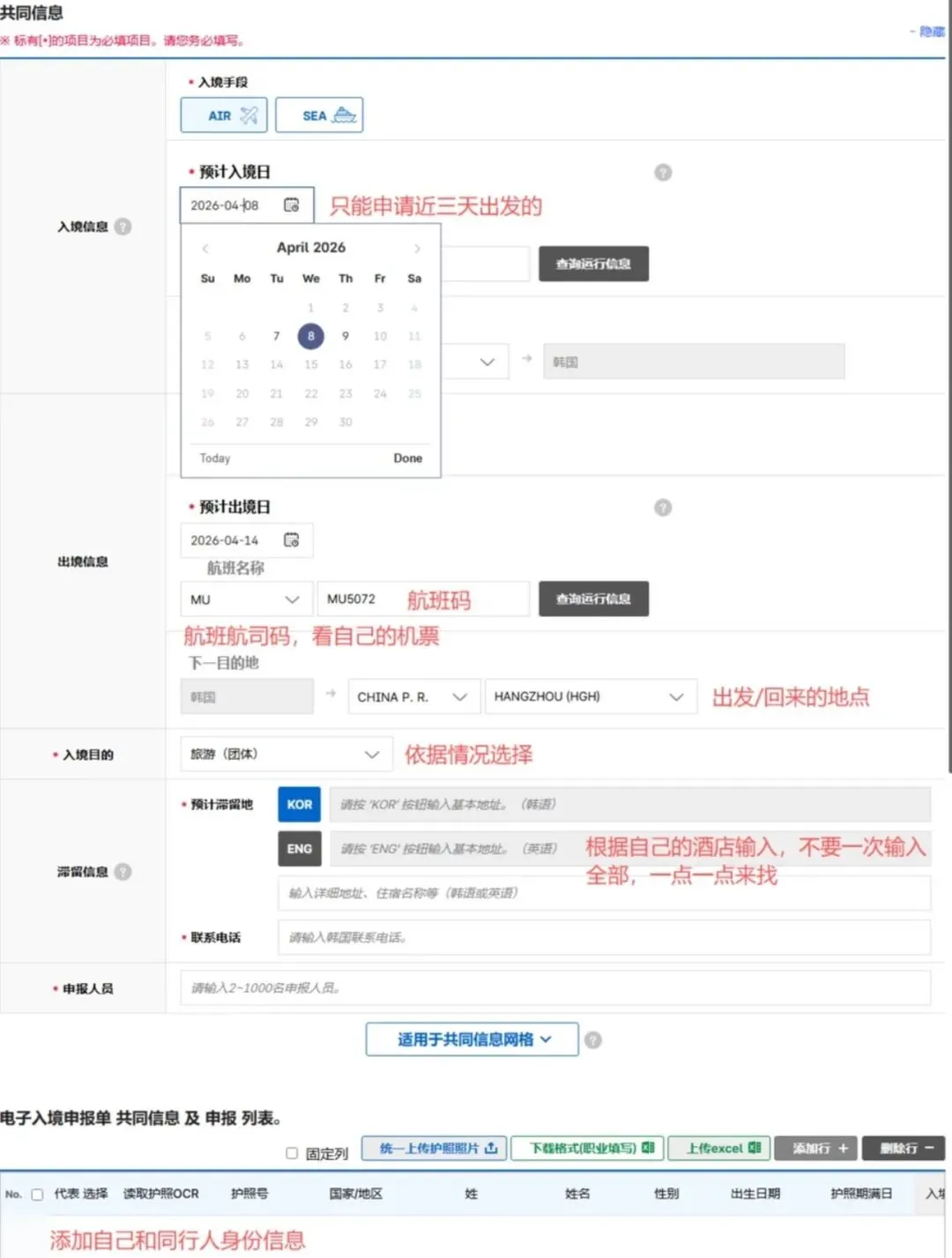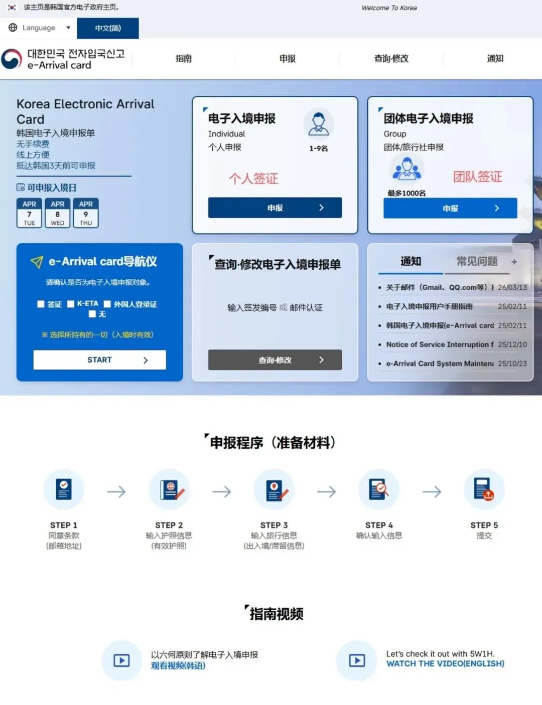 空乘人员发餐的时候和我们讲的是粤语和英语。我老公是深圳人会讲粤语,空乘人员以为我们是香港人,以至于在飞机上发放入境卡的时候,我们举手要,他还和我们说香港人不需要填写入境卡。我们和他解释我们不是香港人他才发现自己误会了把入境卡给我们了。 关于韩国入境卡,有电子版和纸质版。 电子版需要入境前72小时填写。 1️⃣电子版入境卡: 登录网站www.e-arrivalcard.go.kr ①切换语言为中文 ②根据签证类型选择申报入口 ③同意条款后开始输入信息联系电话可以填自己的或者输入韩国酒店电话 (韩国酒店的电话地址那些可以在自己订的酒店页面查看填写。) ④提交,之后在邮箱内就可以收到电子版的入境卡了,不用打印出来,可以放一份在手机里备着,但一般填完就好了。 以下是网页填写详细教程↓