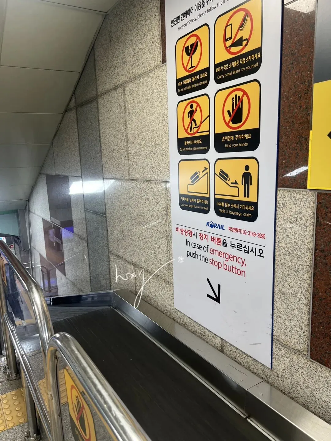 以上就是Arex机场快线的所有内容了。 到了首尔站后,Arex出来也是地铁站,这个站人性化的点是虽然是楼梯路但边上有行李传送带,不用自己扛行李。这个国内的只有楼梯的地方都该学起来!方便人民的设计必须应用在生活呀!