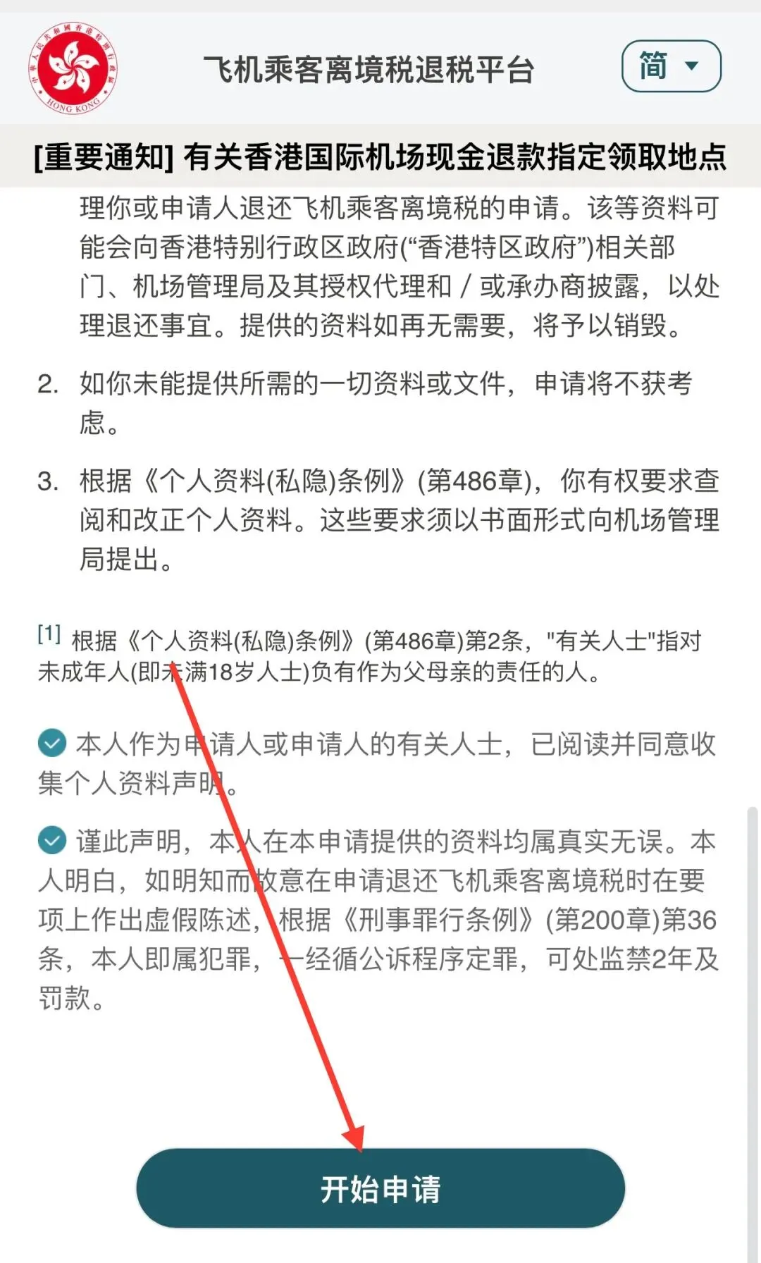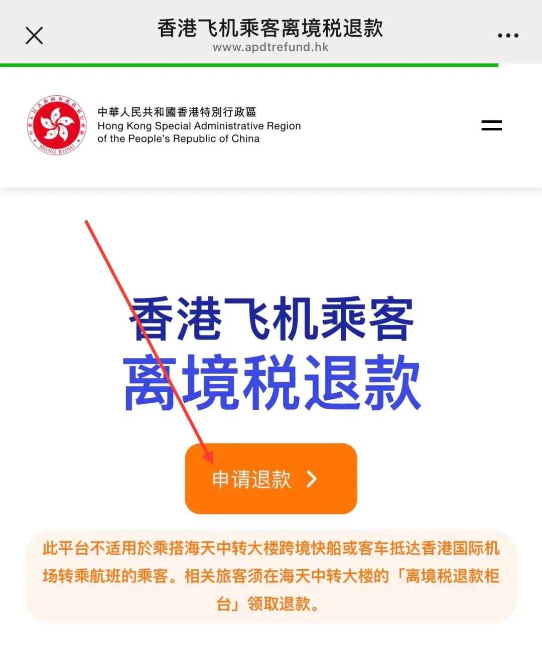 离境后28个自然日内提交,一定要过了离港厅离境之后再操作,最好一次性完成。注意:此平台不适用与乘搭海天中转大楼跨境快船或客车抵达香港国际机场转乘航班的乘客。相关旅客须在海天中转大楼的「离境税退款柜台」领取退款。 2.点击申请退款。
