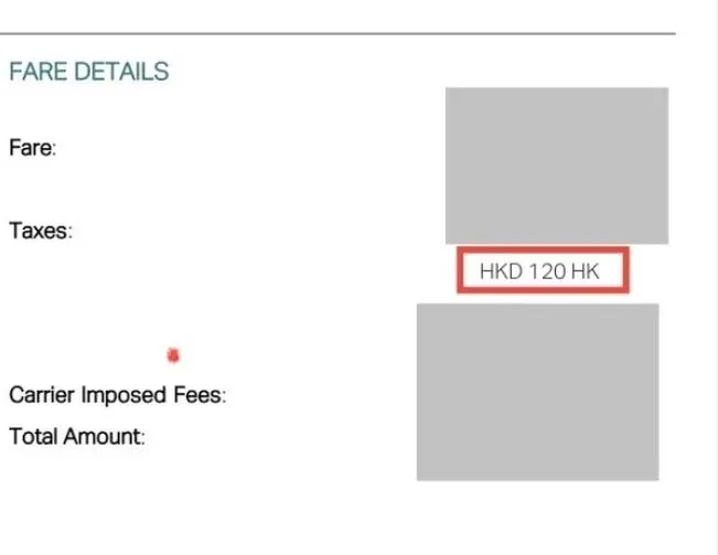 ■离境机票付款证明 要航空公司出示的pdf文件里才有显示离境税。 我坐的是国泰航空,国泰航空可以进官网,登录账户,找到发送电子机票,①点击自己的名字,进入【账户概览】②再进入【预订及航班资料】③添加预定位置输入电子票号,左侧就会出现自己的行程。④选择【通过电邮发送电子机票】⑤登陆邮箱,再查看详细的信息,找到Taxes里有110或者120的就是。如图所示。