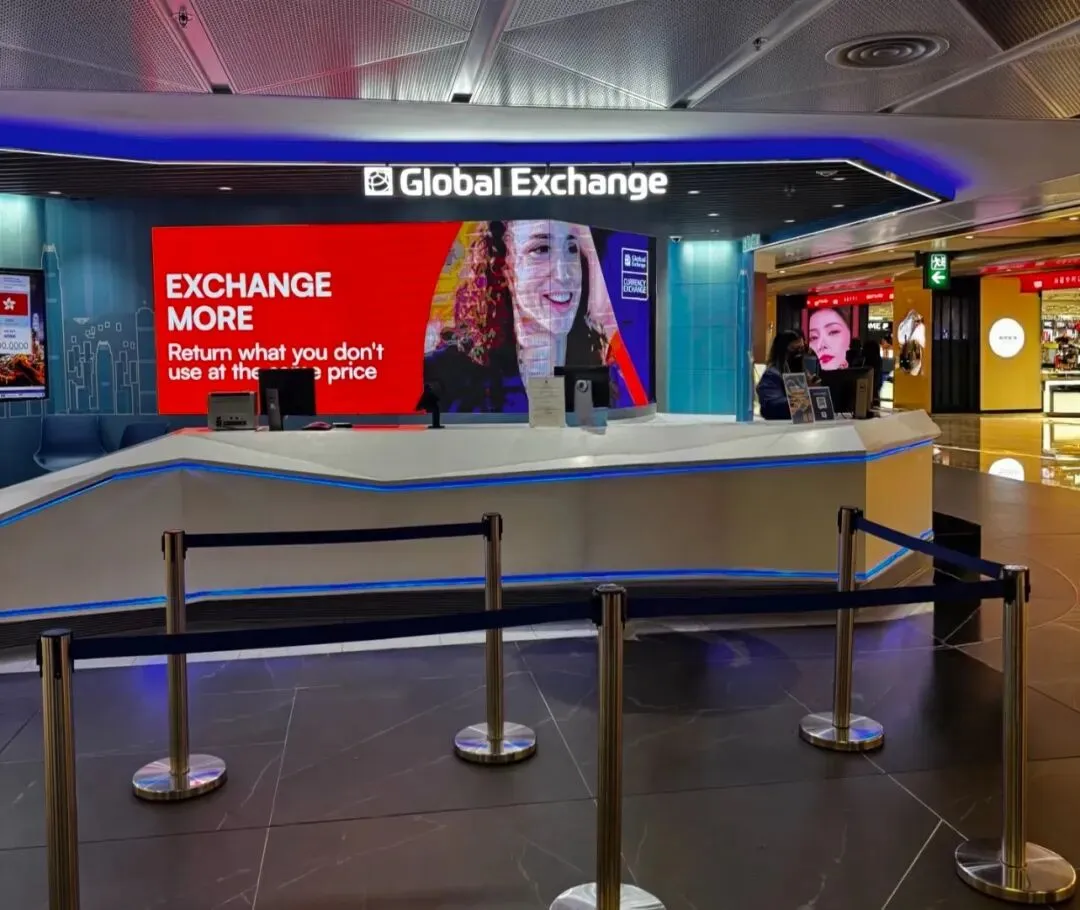 global exchange柜台都有显示英文,看到最近的就去,提供那三个所需文件就行了。