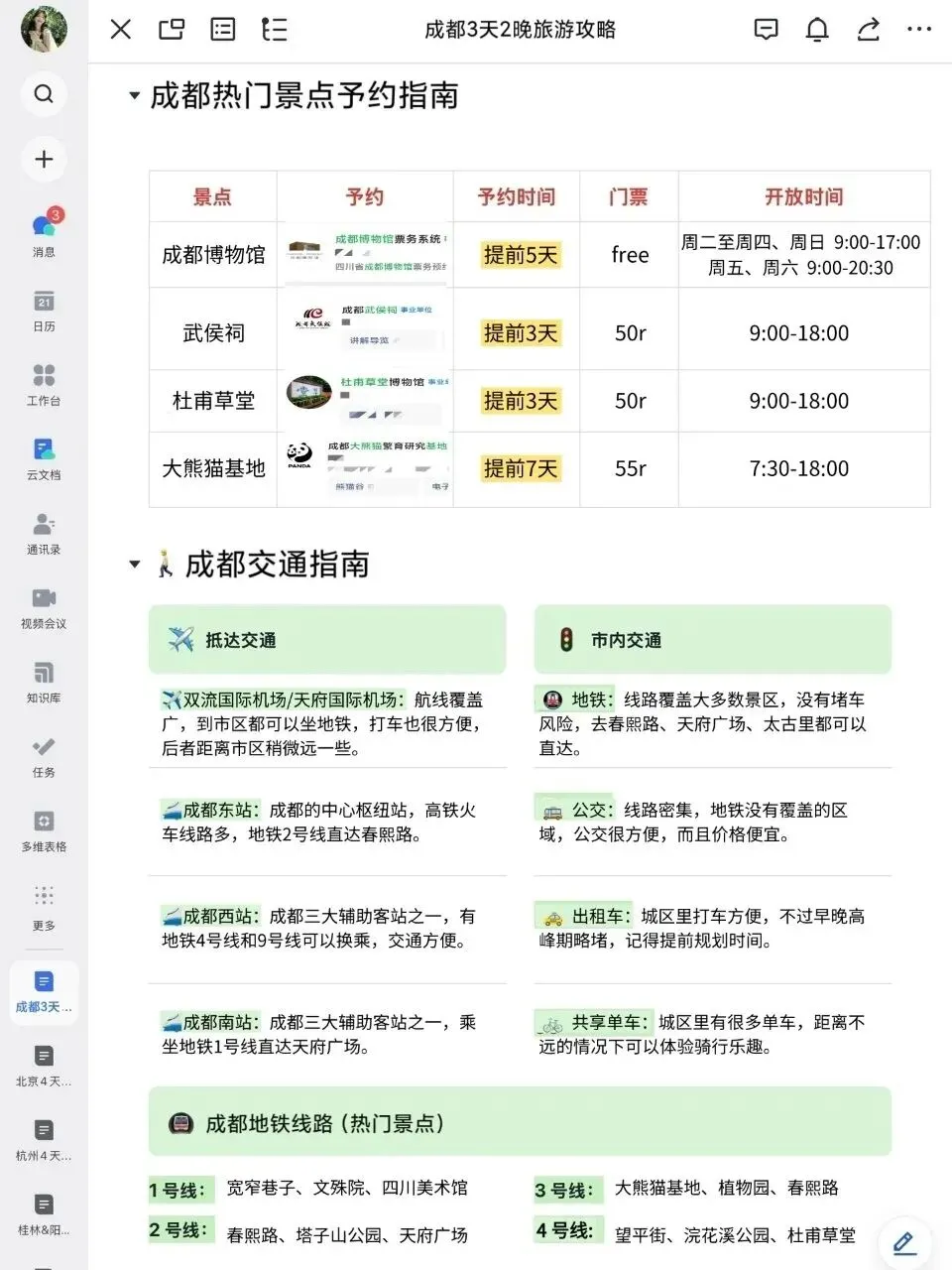 熊猫基地要提前七天约,这不是危言耸听,是事实,现场基本无票,这种确定性能让你避免很多不必要的焦虑,地铁覆盖大多数景区,没有堵车风险,坐地铁很方便这句话在成都绝对是真理。