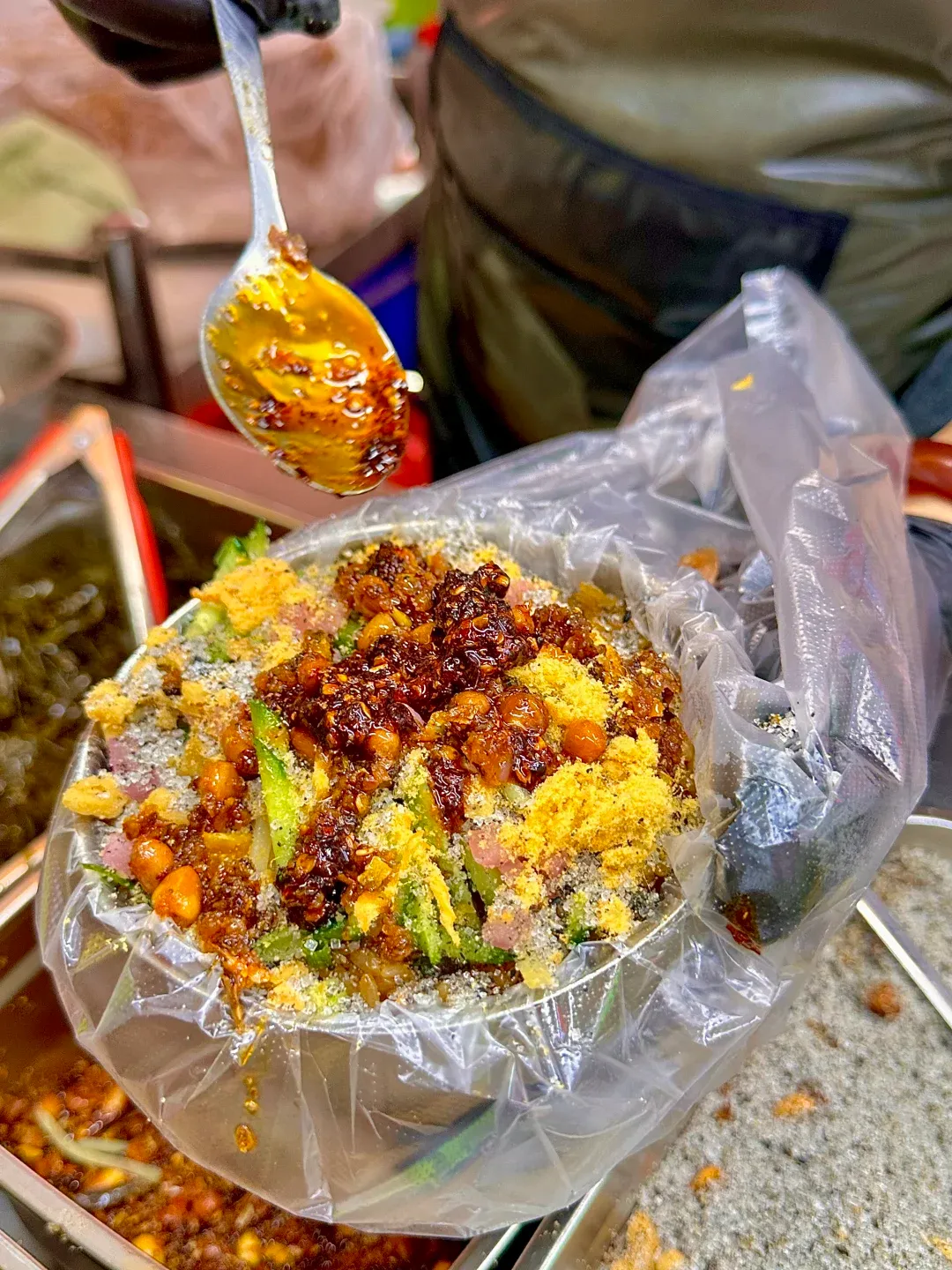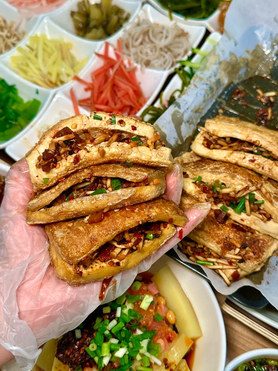 素食小吃天花板!薄米皮包裹十几种素菜丝,浇酸汤蘸水超清爽~