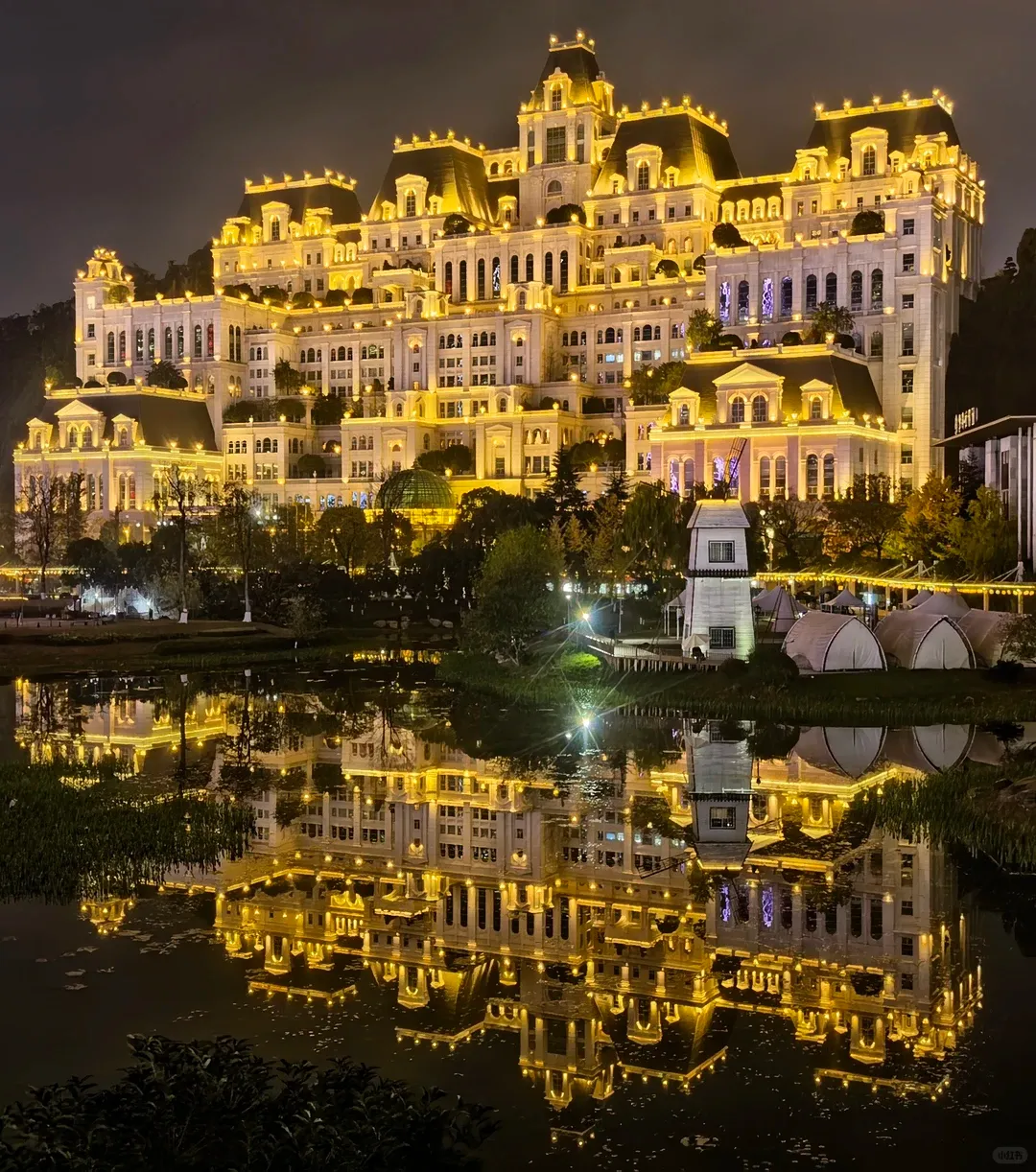 • 夜晚灯光秀绝美,拍倒影超梦幻