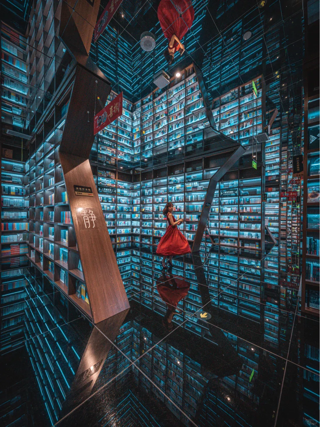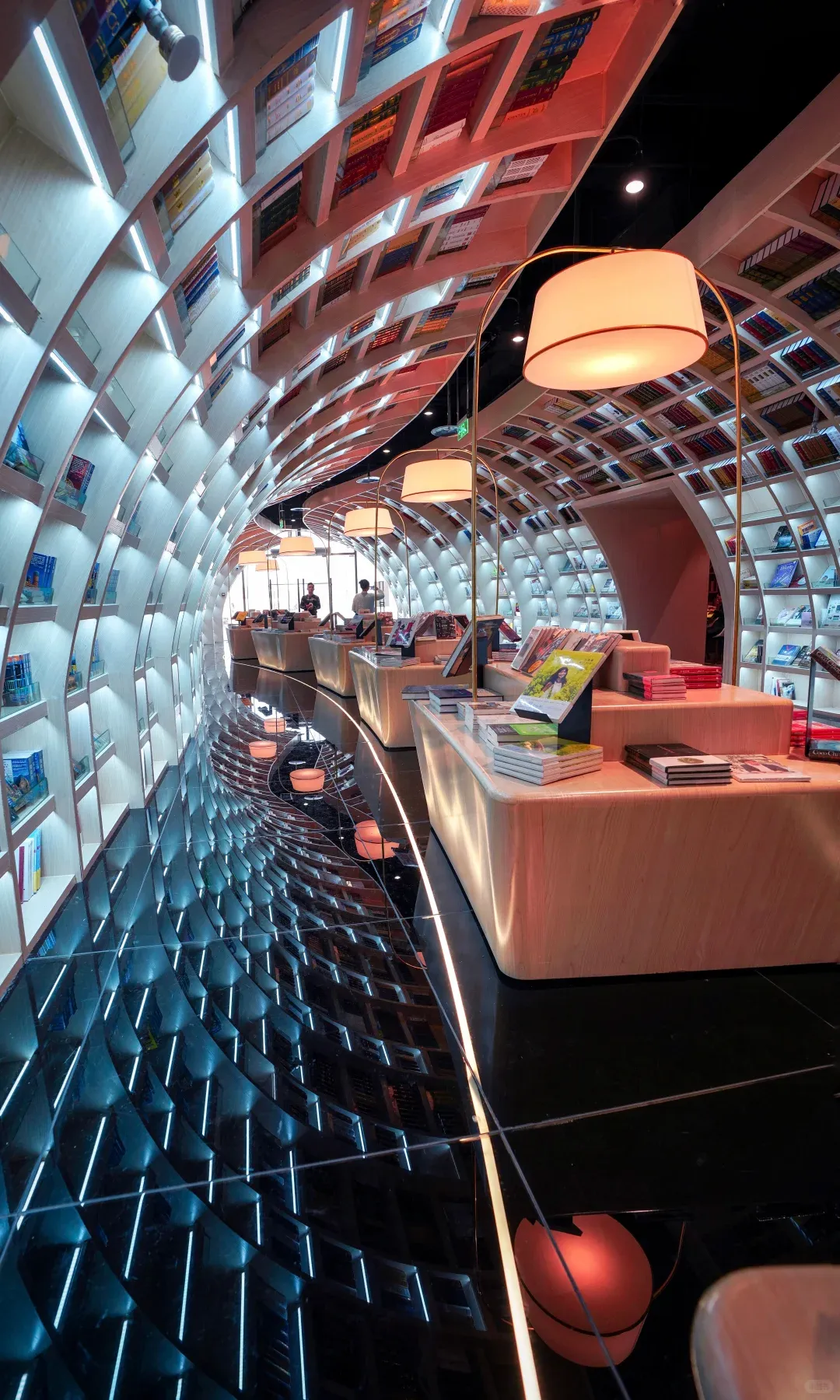 镜面天花板+贵州梯田造型书架,读书也能拍大片!