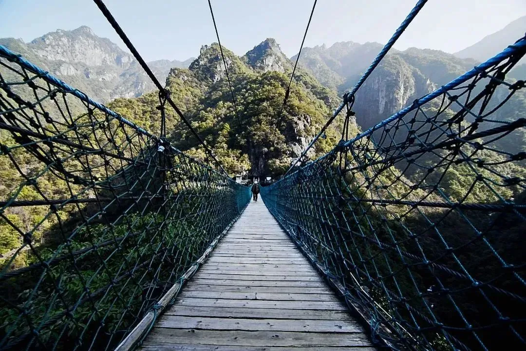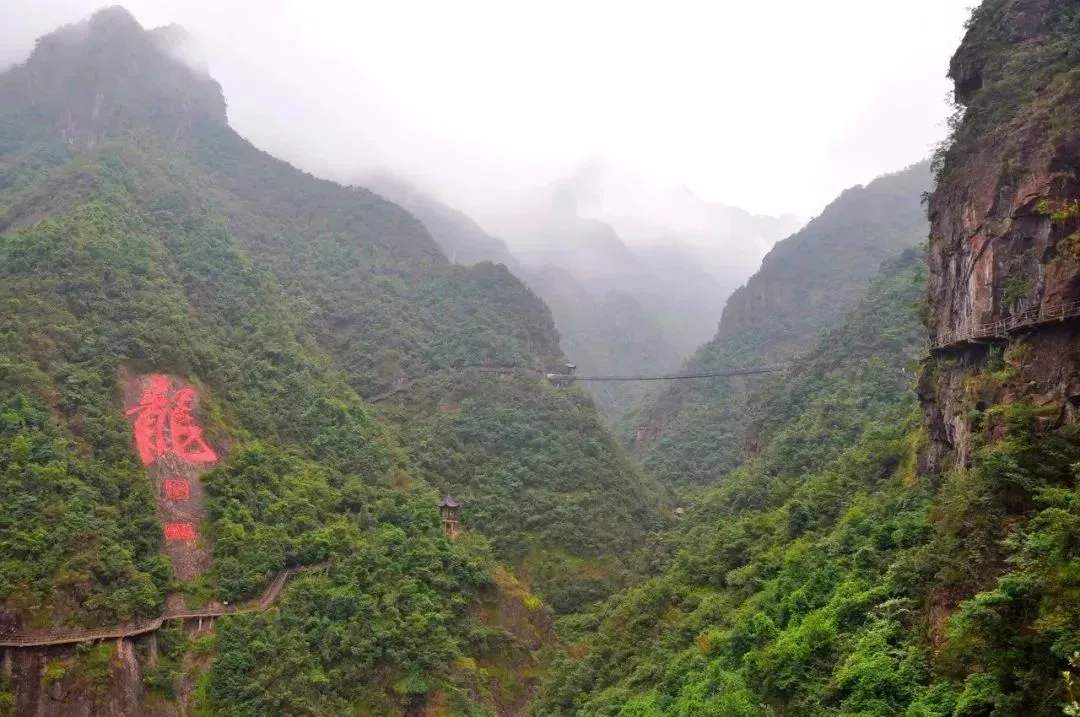 龙的传说给它蒙上了一层神秘的面纱,最特色的景点有飞龙栈道、龙潭飞瀑、龙涎温泉和飞天索桥。