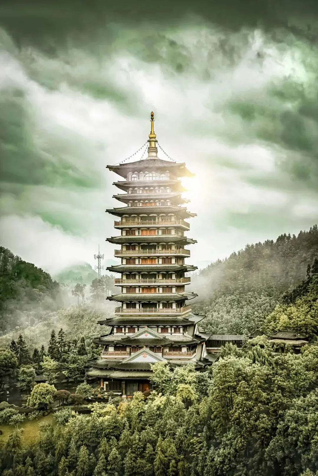 这里还有浙西地区的标志性建筑——醉根宝塔,你可以沿着石梯拾级而上,到答案宝塔,里面都是各路观音的根雕,非常壮观。