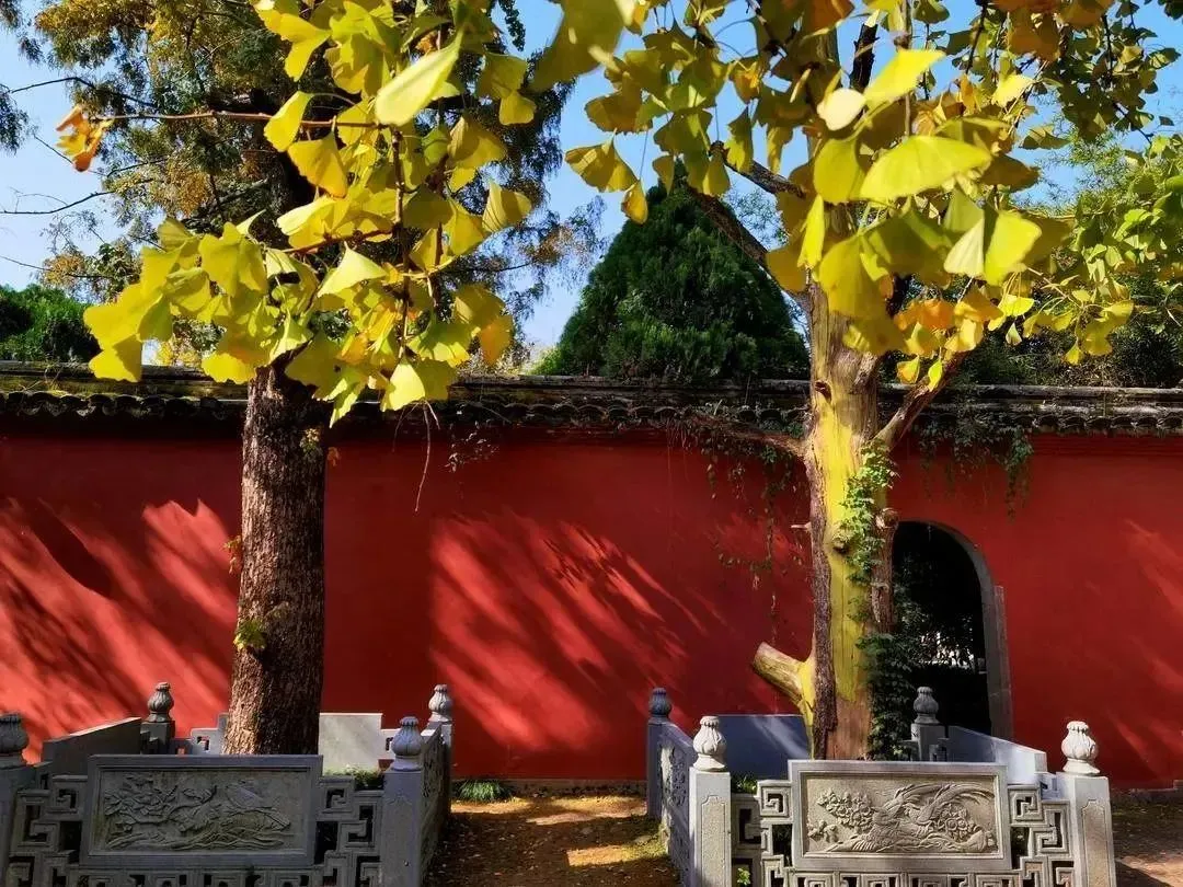 庙内有几棵上百年的银杏树,每到秋天,落叶就将路面铺至金黄色,美不胜收。
