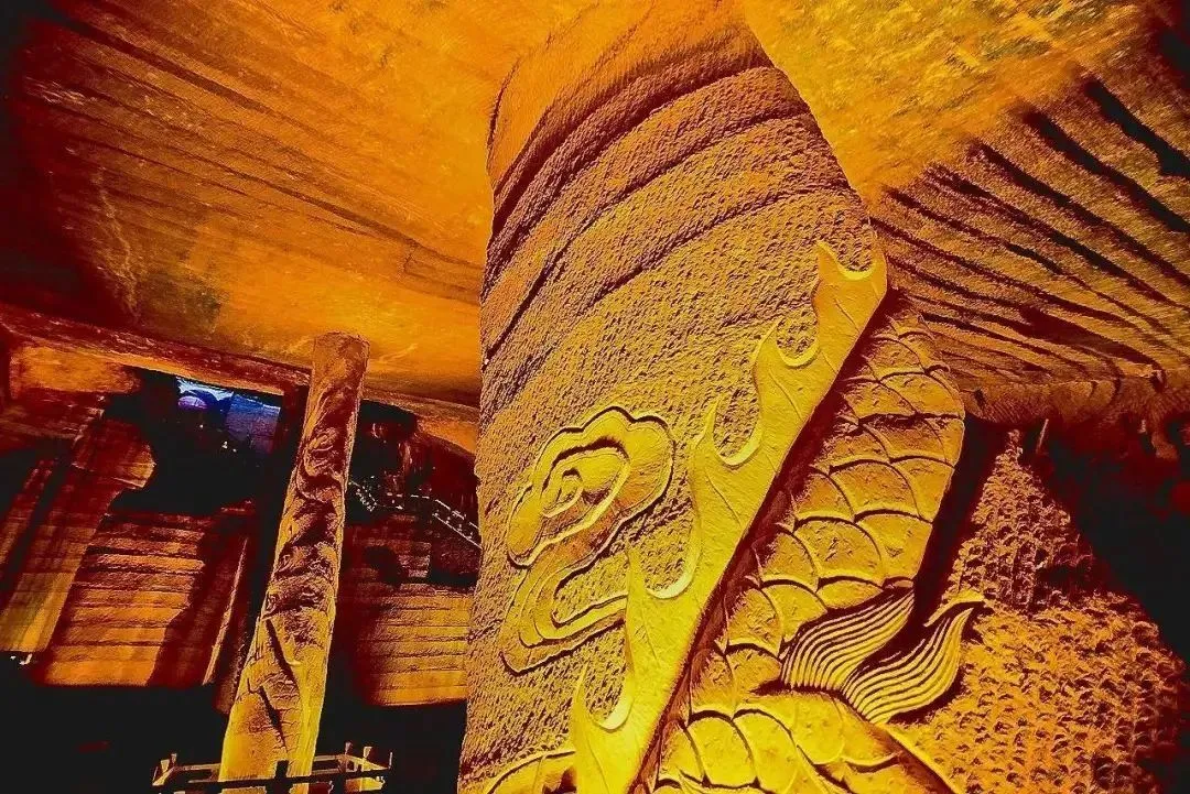 更让人叹为观止的是洞壁、洞顶和石柱上都均匀地留下古人似乎带有装饰意图的凿痕,体现出古人的智慧。