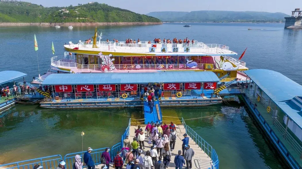 4月18日上午9时,小浪底中心码头彩旗飘扬,人头攒动。三千余名游客、文旅从业者与各界嘉宾齐聚岸边,目光热切地注视着停靠在码头的游船。