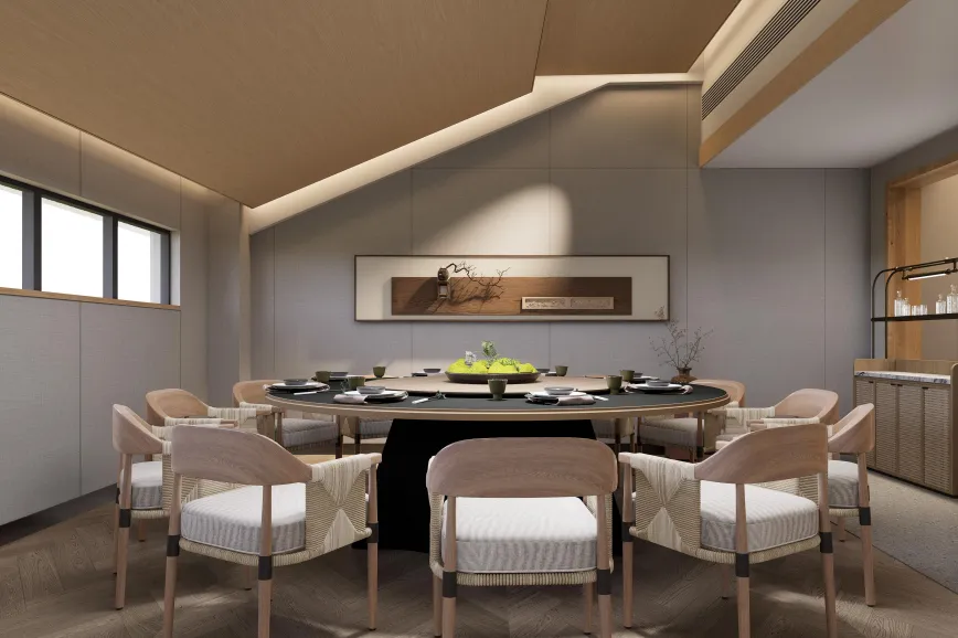 宴愉·餐茶艺术餐厅的茶香袅袅里,适合说一些只有彼此才懂的悄悄话。它藏在湖畔树林里,名家书画衬着茶香,十二间宋词命名的包间,晕染出独有的东方雅致。