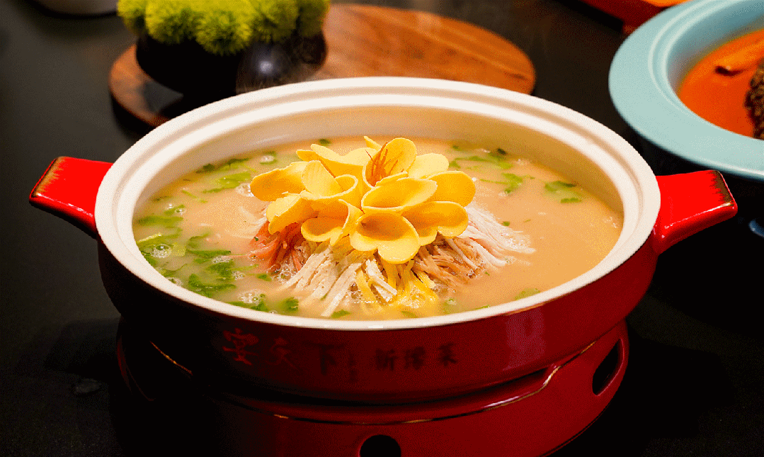 非遗水席地道味美,果木烤鸭飘着香,更有 “品豫菜赏豫剧” 的新意,在宴天下河洛第一宴,为你夹起第一口牡丹燕菜,看花瓣在汤里舒展,像我们慢慢盛开的心意。