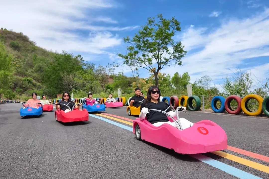 马卡龙索道满载少女心,空中慢赏春色;山地滑板车俯冲追风,刺激又解压;乘游船泛舟湖面,看白鹭青山、波光粼粼,时光都慢下来。