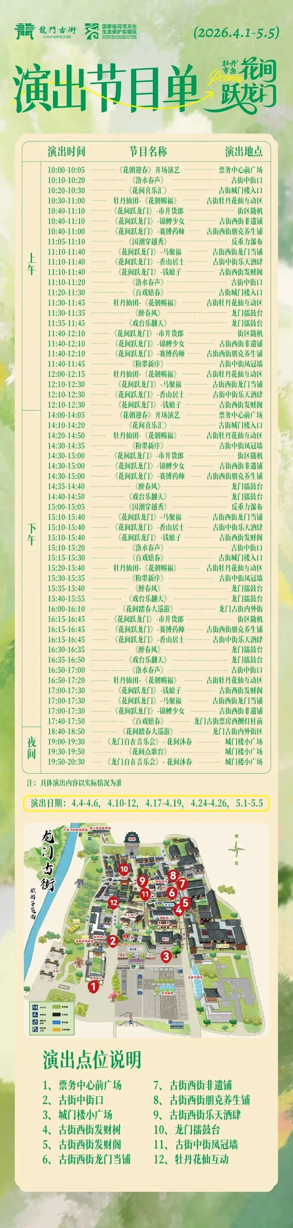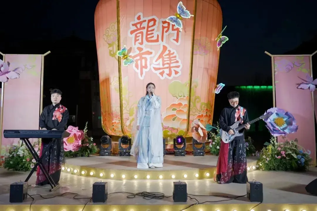 白天,牡丹花神带着仙团巡游,《花朝赐福》的情景剧正在上演;夜晚,《龙门自在音乐会》的歌声响起,古今的旋律在此碰撞,别有一番风味。