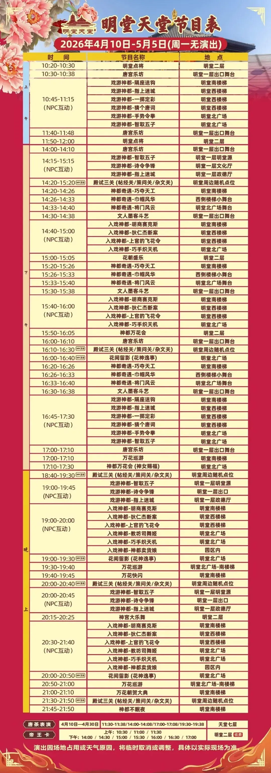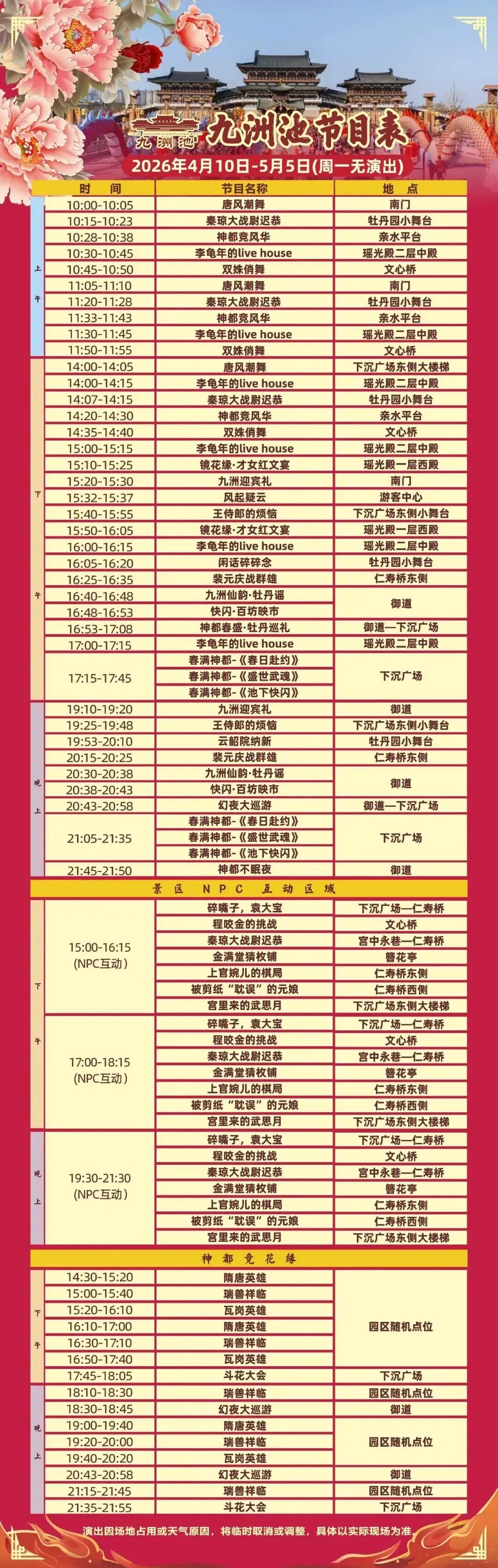 👉最新演出表(上下滑动查看最新演出表)