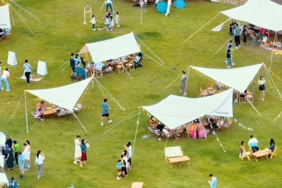玩累了,就去冷却塔下的草坪露营。支一顶帐篷,看云卷云舒,听风吹过树叶的声音。
