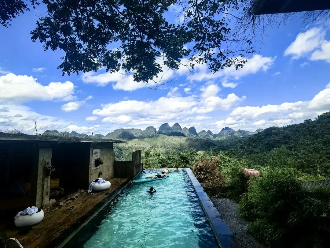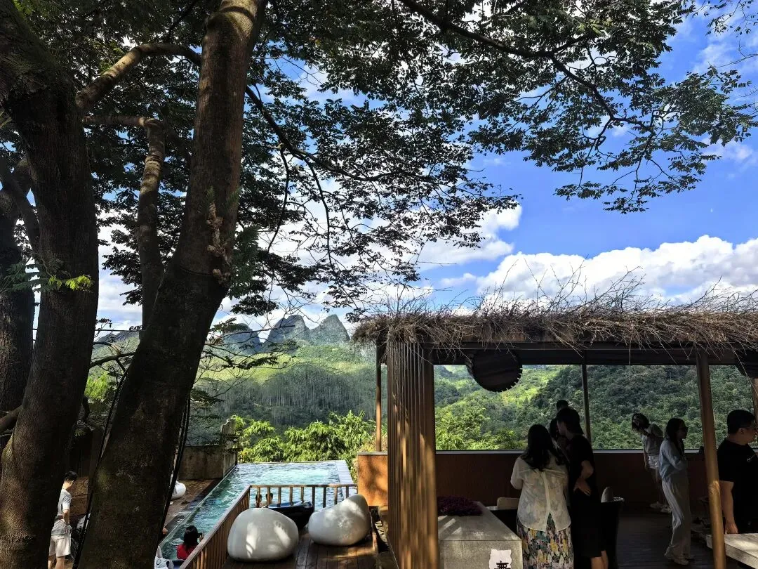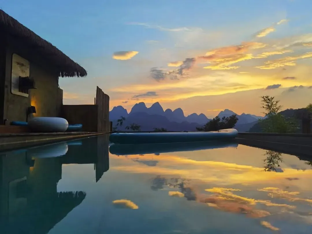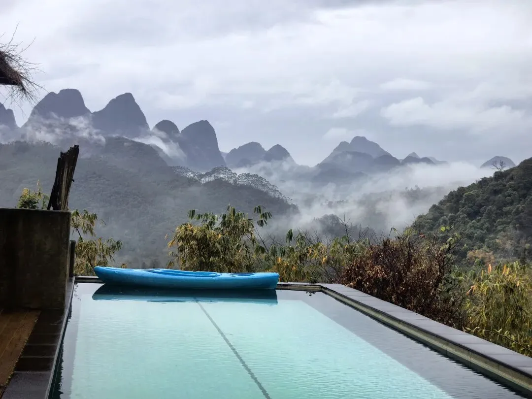 办好入住后,在公共泳池旁观景台欣赏云上云左必打卡:大自然千变万化的天然巨幕美景。