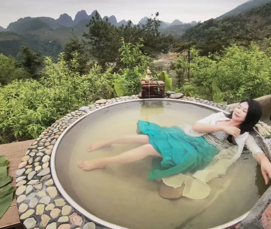高山泉水加热的汤泉,丝滑清爽,周围群山环绕,蝉鸣鸟啼,洗去身心的疲惫,夜晚好梦。