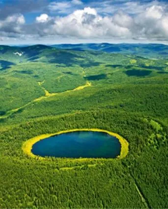 阿尔山国家森林公园:镶嵌在碧波浩瀚的大兴安岭林海中,公园内有大兴安岭主高峰,更有火山爆发时熔岩流淌凝成的石塘林和天池,其矿泉资源得天独厚,被称为“天下奇泉”