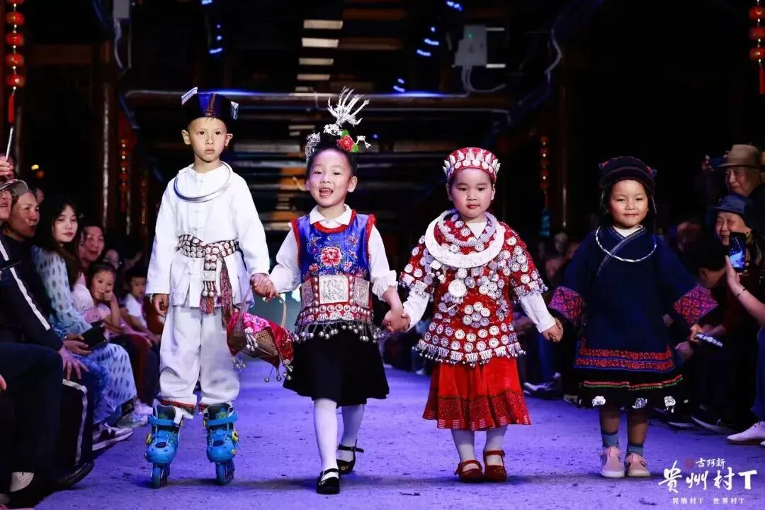 “村T”秀展示民族文化、民族自信的百姓舞台。随着夜幕降临,这里的风雨长廊便化身为T台,草根模特和时尚爱好者们自信地展示着贵州多元的民族服饰和歌舞艺术。他们的热情、自信与优雅,不仅展示了苗族和侗族的传统文化,也彰显了现代的时尚气息。