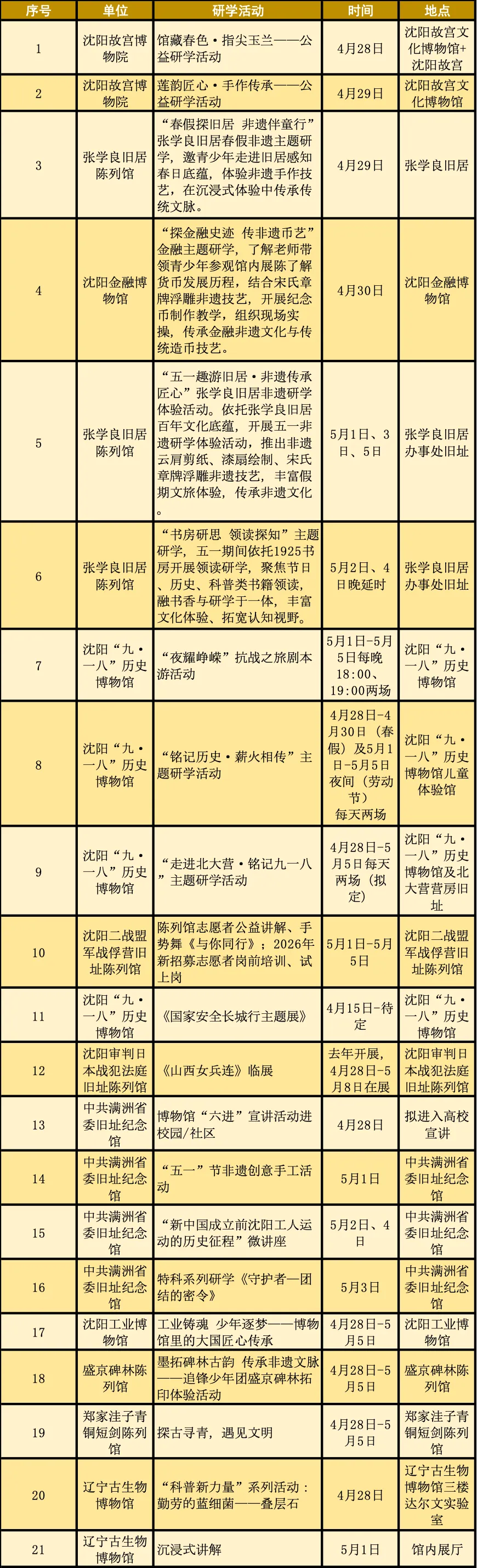 ▶4月25日—5月8日(不包含周一及五一假期),全国义务教育阶段学生持有效证件,可免费游览沈阳故宫、张学良旧居(沈阳金融博物馆),每日5000张名额,1位陪同家长也可免票,记得提前在官方平台线上预约哦。