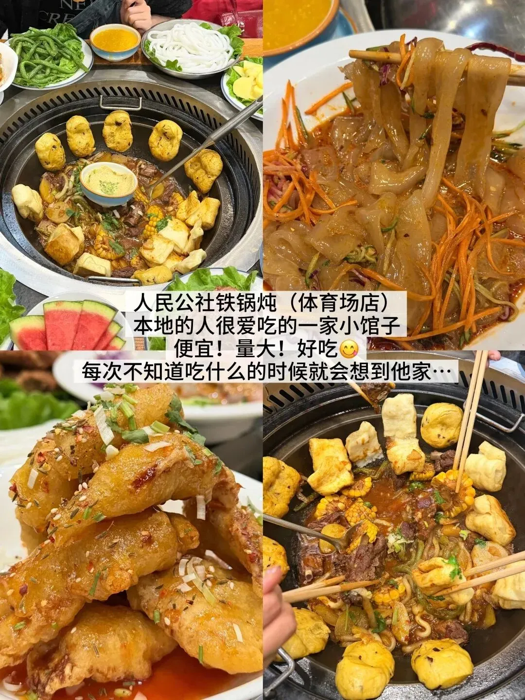 体育场附近的铁锅炖也是本地人很爱吃的一家小馆子,便宜,量大,好吃,每次不知道吃什么的时候就会想到他家,那种大锅炖出来的味道,带着一种家常的 warmth,大家围坐在一起,热气腾腾的,这才是生活该有的样子,不是那种高高在上的精致料理,是沾着泥土带着烟火气的实在饭,吃完身上暖乎乎的,心里也踏实。