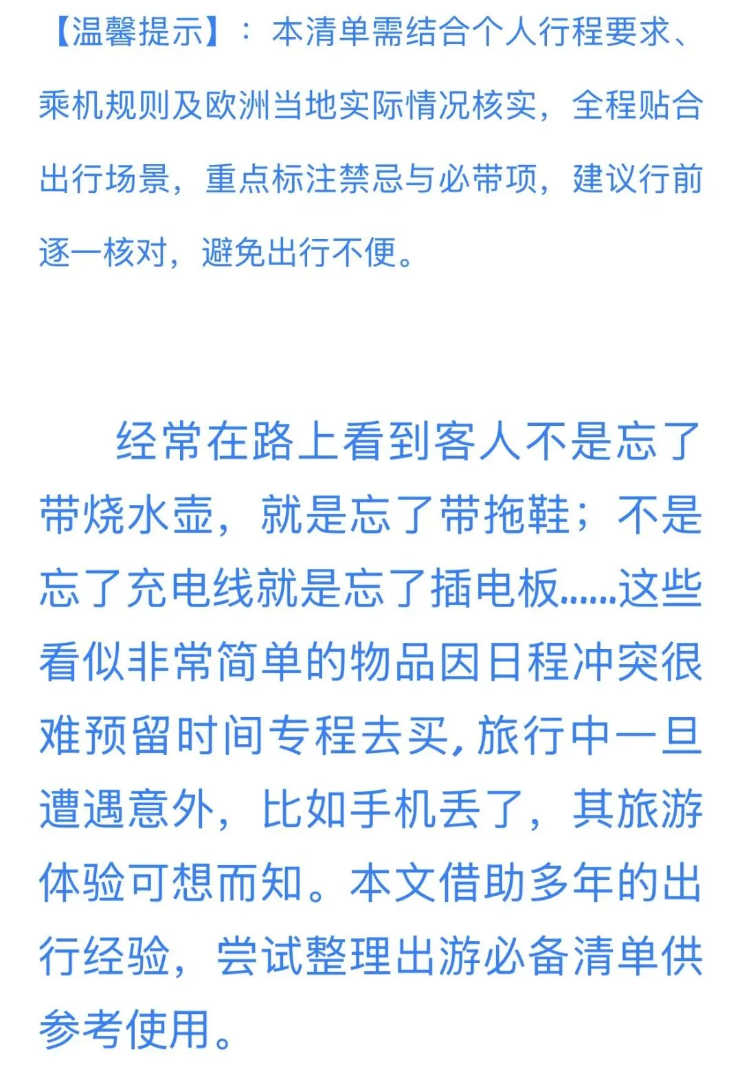 您现在的位置是:首页 > 国内旅游目的推荐 > 正文 国内旅游目的推荐 【旅游攻略】收藏版!欧洲出游必备物品清单! admin2026年04月20日 09:58:22国内旅游目的推荐1 【旅游攻略】收藏版!欧洲出游必备物品清单!——————❤️—————— 转载请说明来源于"旅荐网",部分内容转载自网络,如有侵权请联系qlwl@foxmail.com删除 本文地址:https://www.15386.cn/post/156557.html 上一篇 湖北旅游攻略 下一篇 四川成都旅游攻略 相关文章 四川成都旅游攻略 湖北旅游攻略 西安旅游攻略-千年古都,常来长安 终于有人把苏州旅游说明白了~超全攻略看这篇! 【山西旅游】第一次去山西旅游,游玩顺序一定搞对了 8天甘蒙自驾封神路线从陇上江南到腾格里沙漠,不走回头路 皖美宝藏小城3天2夜游玩攻略丨来皖南泾县这么玩就对了! 2026五一旅游全攻略:精选景点+路线规划+出行避坑指南 郴州交旅丨五一郴州旅游攻略 【湖北-荆门】旅游计划 发表评论 取消回复 评论列表 这篇文章还没有收到评论,赶紧来抢沙发吧~