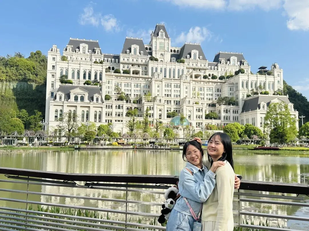 白宫是花果园的核心地标,白色欧式宫殿建筑,背山面湖,白天夜晚都很出片。