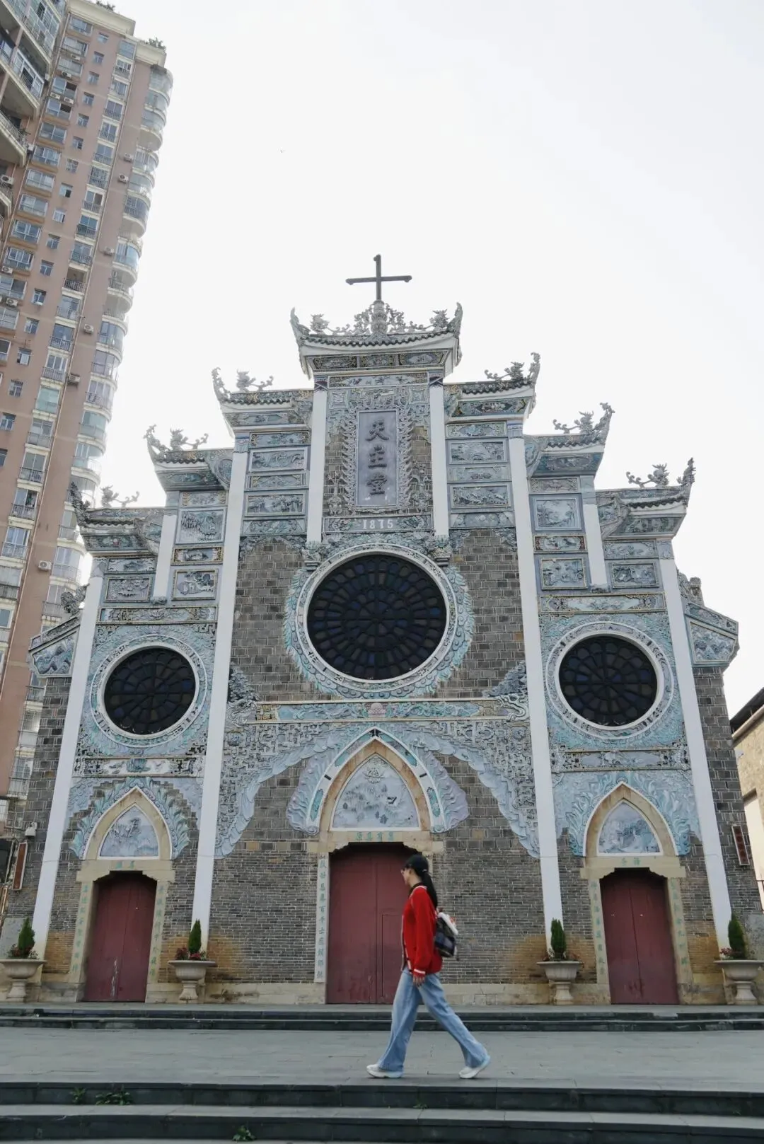 外观中西合璧,内部彩色玻璃窗,拍照非常出片。