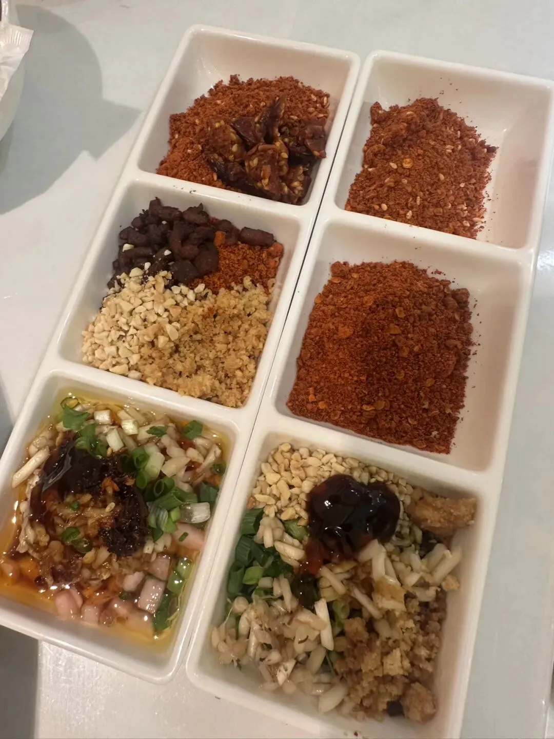 • 光头素粉:13元一份,送煎蛋/卤蛋,免费泡菜+豆浆,酸汤、泡椒牛肉味都好吃
