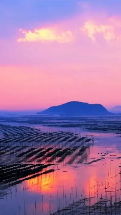 12 霞 浦 在阳光的照射下,宛如一幅没有经过修饰的水墨画。 这里被誉为“光与影的魔术师”。滩涂上万根竹竿插成一块块方形的网框,由远及近,绵延数十里,蔚为大观。