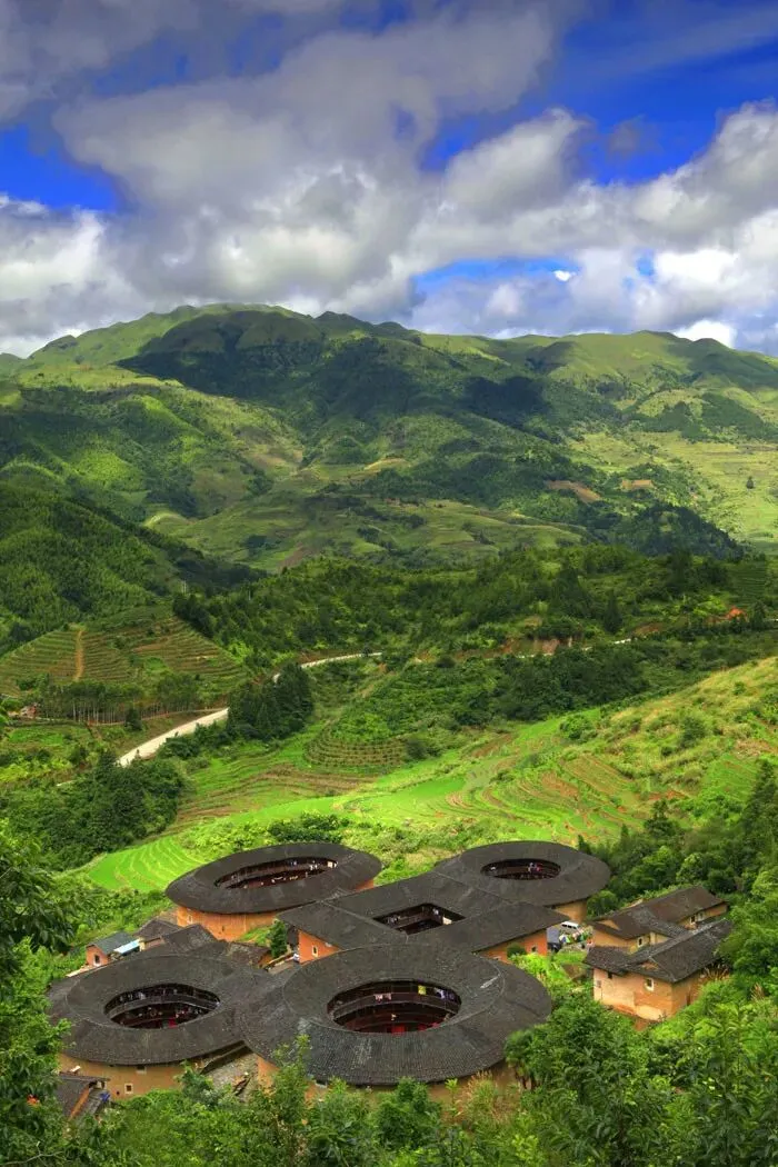17 福建土楼 世界独一无二的山区群居建筑,太震撼了。 南靖土楼,遵循了“天人合一”的理念,土墙与梯田遥相呼应,神仙居所也不过如此。