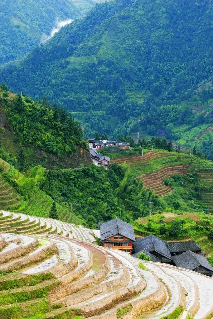 21 龙脊梯田 行云流水,气势磅礴。 早晨雾气朦胧,俯瞰这里,梯田宛如瀑布倾泻,无比壮观。