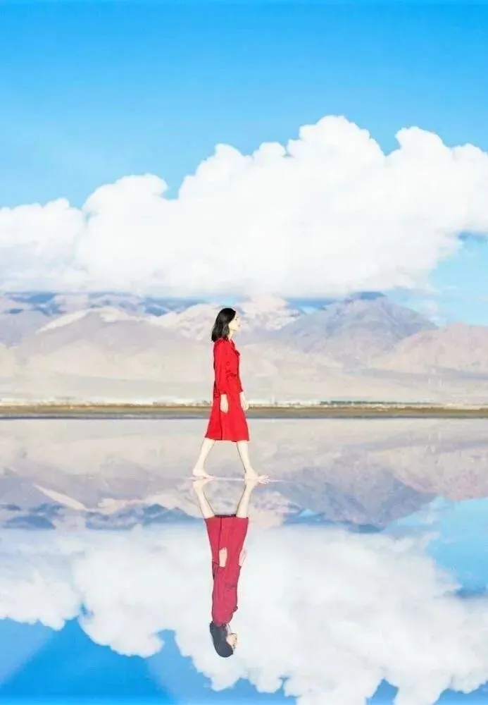 34 茶卡盐湖 中国最美的天空之境,干净而纯洁。 在这里只能听到自己的呼吸声,只能看到蓝天上的白云,分不清脚下到底是真实还是虚幻,空旷又宁静。