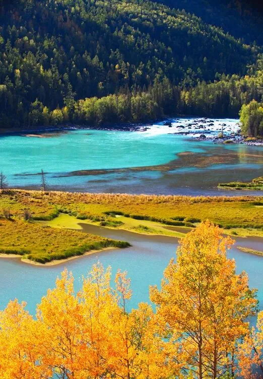 40 喀纳斯 迷人的天上景,旅行者和摄影人向往的天堂。 它美在湖水、山巅、森林。四季皆美景,尤其在秋天的时候,视野之内净是不添油墨的佳作。