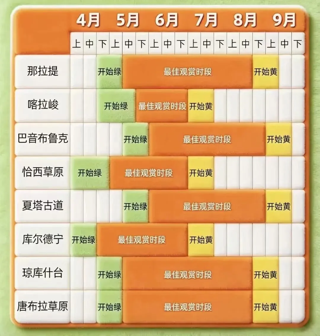 想来伊犁玩,可以先看好游玩时间适配哪个草原再出发。