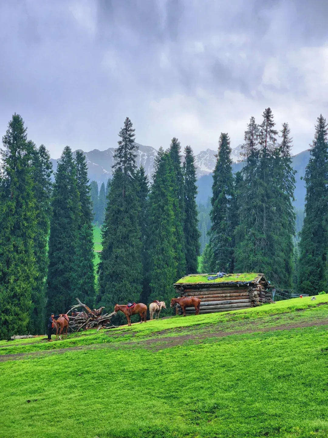 这是一个藏在深山里的哈萨克村子,免费,有原始村落、高山草原、小木屋、雪山倒影,说是海蒂爷爷的现实版也不为过。后山的秋天+原始木屋氛围感十足,需要骑马或者是徒步进去。