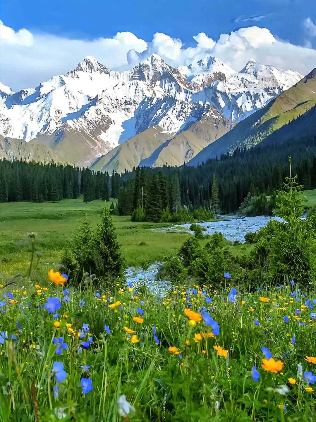 免费,沿着公路就是百里画廊,路两边是草原、溪流、云杉和雪山。里面的仙女湖要骑马或者徒步才能到,就像秘境一般美丽,雪山、草原、山地、湖泊都有。