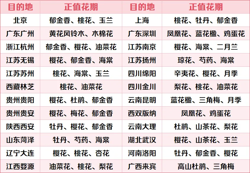 (2)航线覆盖22个省份/直辖市的热门赏花目的地