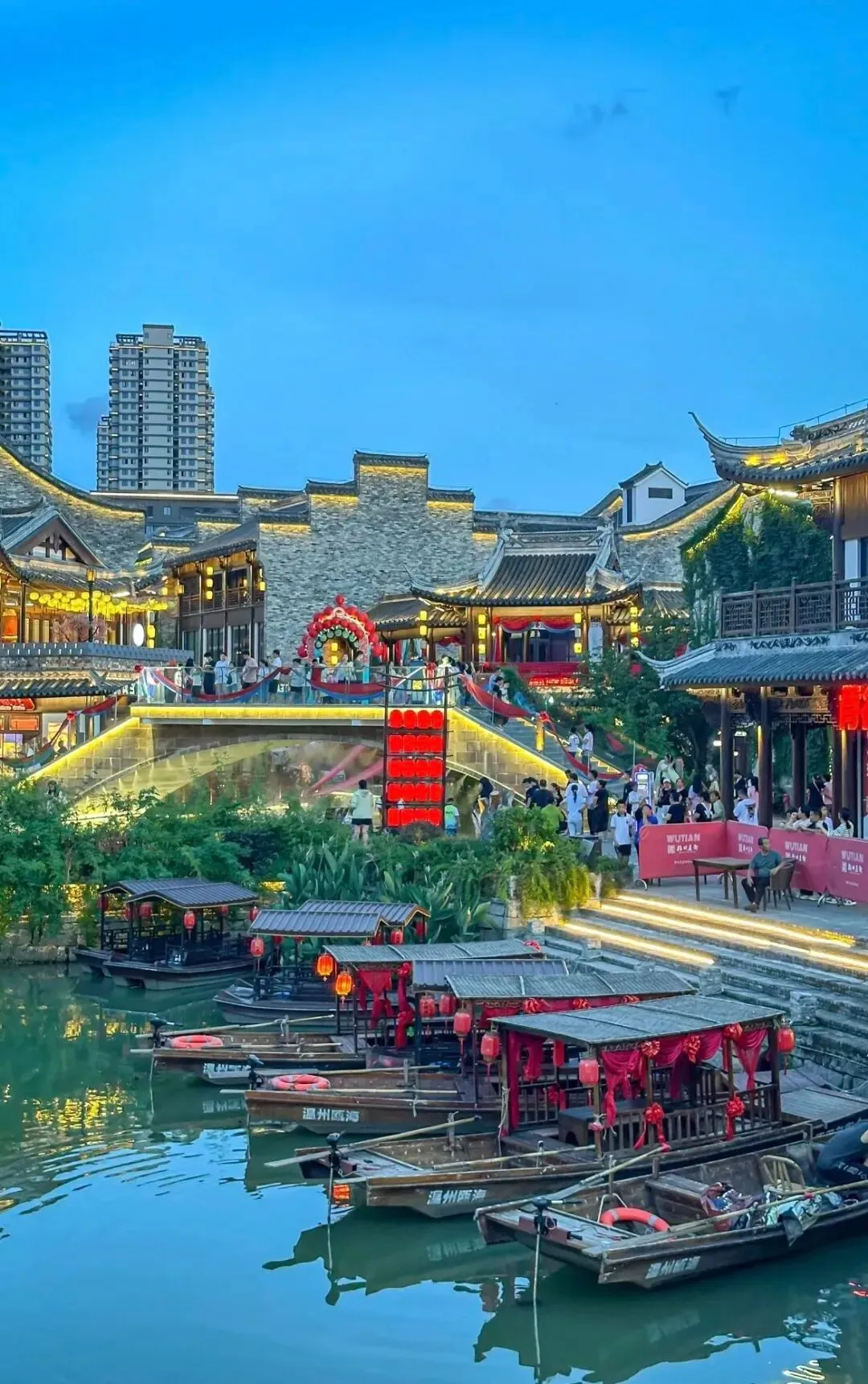 梧田老街:古风沿河街区,夜景璀璨,打卡塘河乌篷船、古风戏
