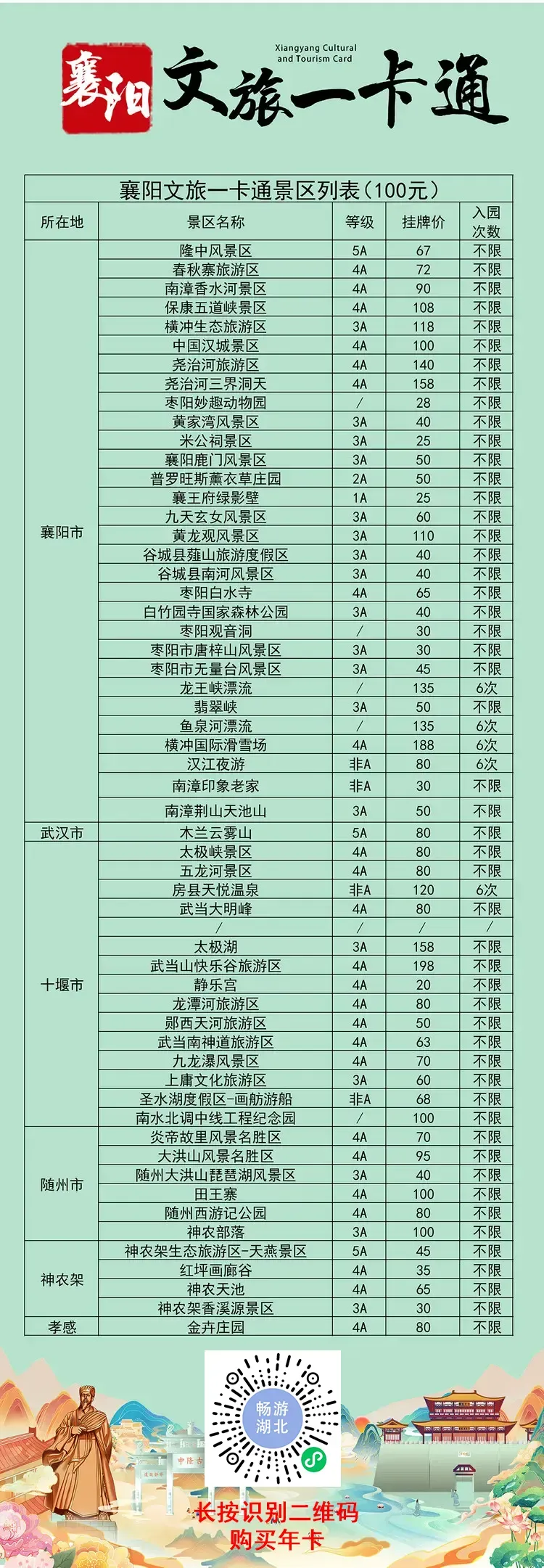来源:畅游湖北、襄阳文旅一卡通、惠游襄阳旅游年卡