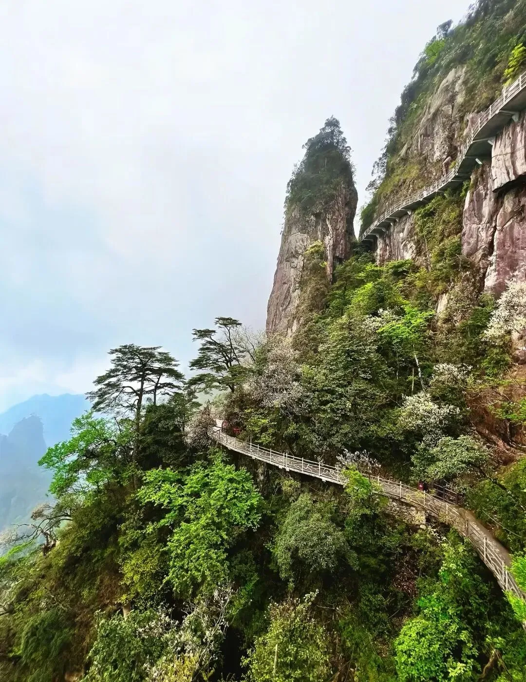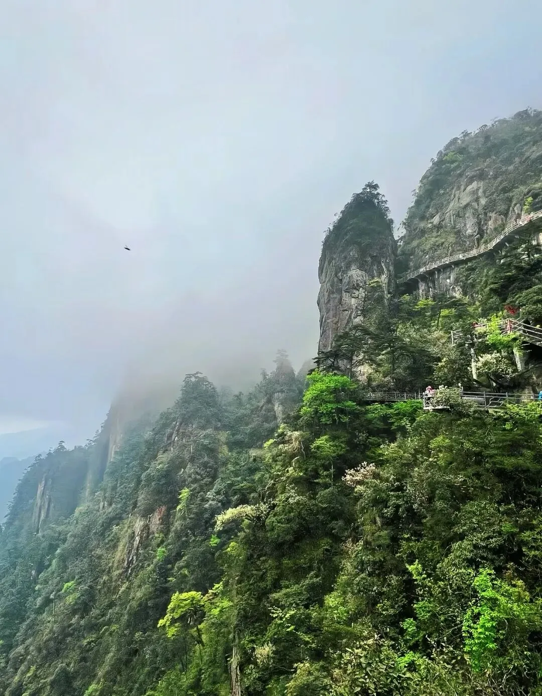 走进莽山,就像闯入了一座“动植物基因库”:这里栖息着被誉为“蛇中熊猫”的莽山烙铁头蛇,全球仅存约300-500条;还有国家一级保护动物黄腹角雉、南方红豆杉等珍稀物种。漫步在原始森林中,古木参天,藤蔓缠绕,潺潺溪流与鸟鸣交织成一曲自然的乐章,每一口呼吸都充满了负氧离子,是名副其实的“南方第一森林氧吧”。二、不用爬的山,让所有人都能触摸云海