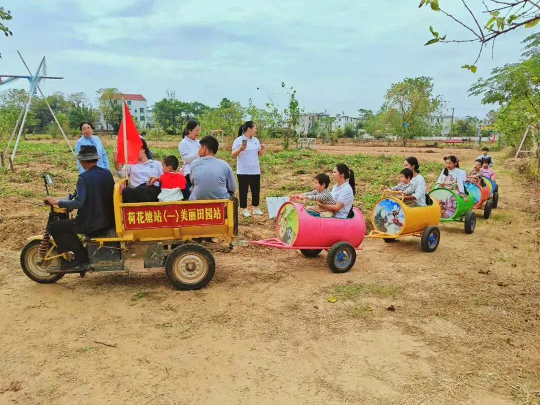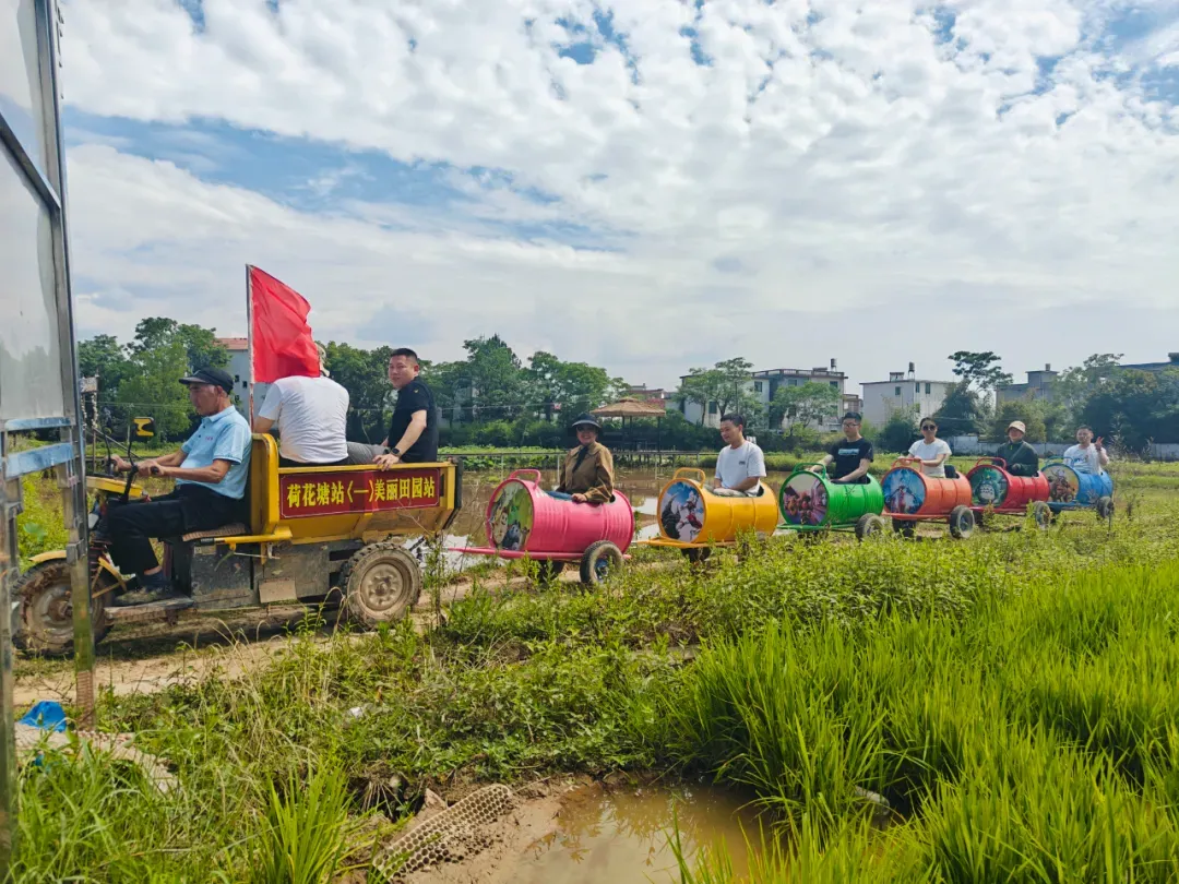 乘坐网红小火车,带领大家参观荷花塘的田园风光:格桑花海、稻田、荷塘、甘蔗地、红薯地等。