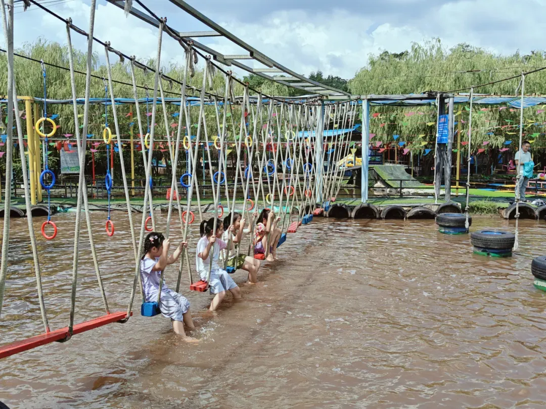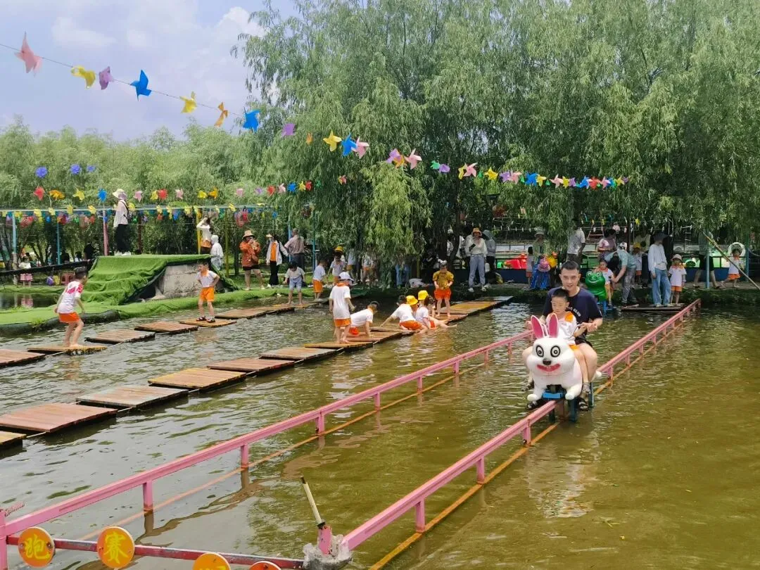 喜欢玩水是孩子们的天性,水上拓展、手摇船。